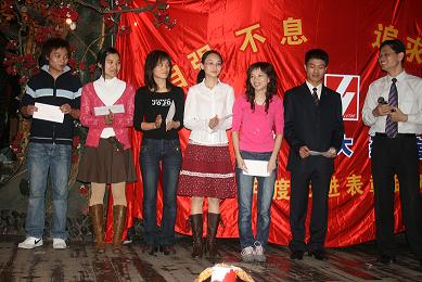 下午4:00整,在《好日子》歡快的歌舞中,表彰聯(lián)歡會(huì)正式拉開了序幕。會(huì)上共頒發(fā)了九個(gè)獎(jiǎng)項(xiàng),分別是最佳員工獎(jiǎng)6人,最佳藥師獎(jiǎng)2人,最佳新人獎(jiǎng)、最佳參與獎(jiǎng)、最佳貢獻(xiàn)獎(jiǎng)各1人,最佳店長(zhǎng)獎(jiǎng)3人,最佳門店獎(jiǎng)2個(gè),還有兩個(gè)特殊的獎(jiǎng)項(xiàng):一是半年度毛利考核指標(biāo)完成相對(duì)值、絕對(duì)值各前3名的門店,二是2000年8月前入職的老員工獎(jiǎng)。頒獎(jiǎng)過程中還穿插了員工們自編、自導(dǎo)、自演的小節(jié)目。他們用優(yōu)美的舞姿、甜美的歌聲、俏皮搞笑的小品為杰出的先進(jìn)代表們喝彩、祝福,現(xiàn)場(chǎng)氣氛非?;钴S,高潮迭起,一張張如花的笑靨遨游在一片歡樂的海洋……最后,在《感恩的心》的優(yōu)美的旋律和熱烈的掌聲中,活動(dòng)暫告一個(gè)段落。
