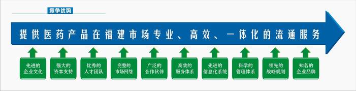 我們致力于提供多樣化的增值服務,成為福建省最具增值能力的流通服務商。通過業(yè)務網(wǎng)絡的協(xié)同、相關硬件的投入及ERP 在全省范圍的聯(lián)網(wǎng),公司能為客戶提供商業(yè)合作、物流配送、信息查詢、藥品推廣、藥事服務、方案咨詢等多樣化的服務。